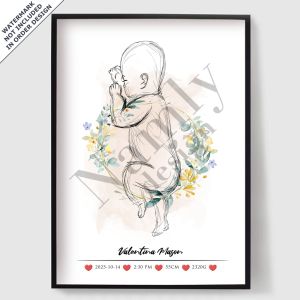 Celebrate life’s most precious moment with our personalised birth and birthday posters — beautiful custom prints designed to capture the details of your child’s arrival. In this collection, you can create a unique poster by adding your baby’s name, date of birth, time, weight and length, turning special memories into timeless wall art.
