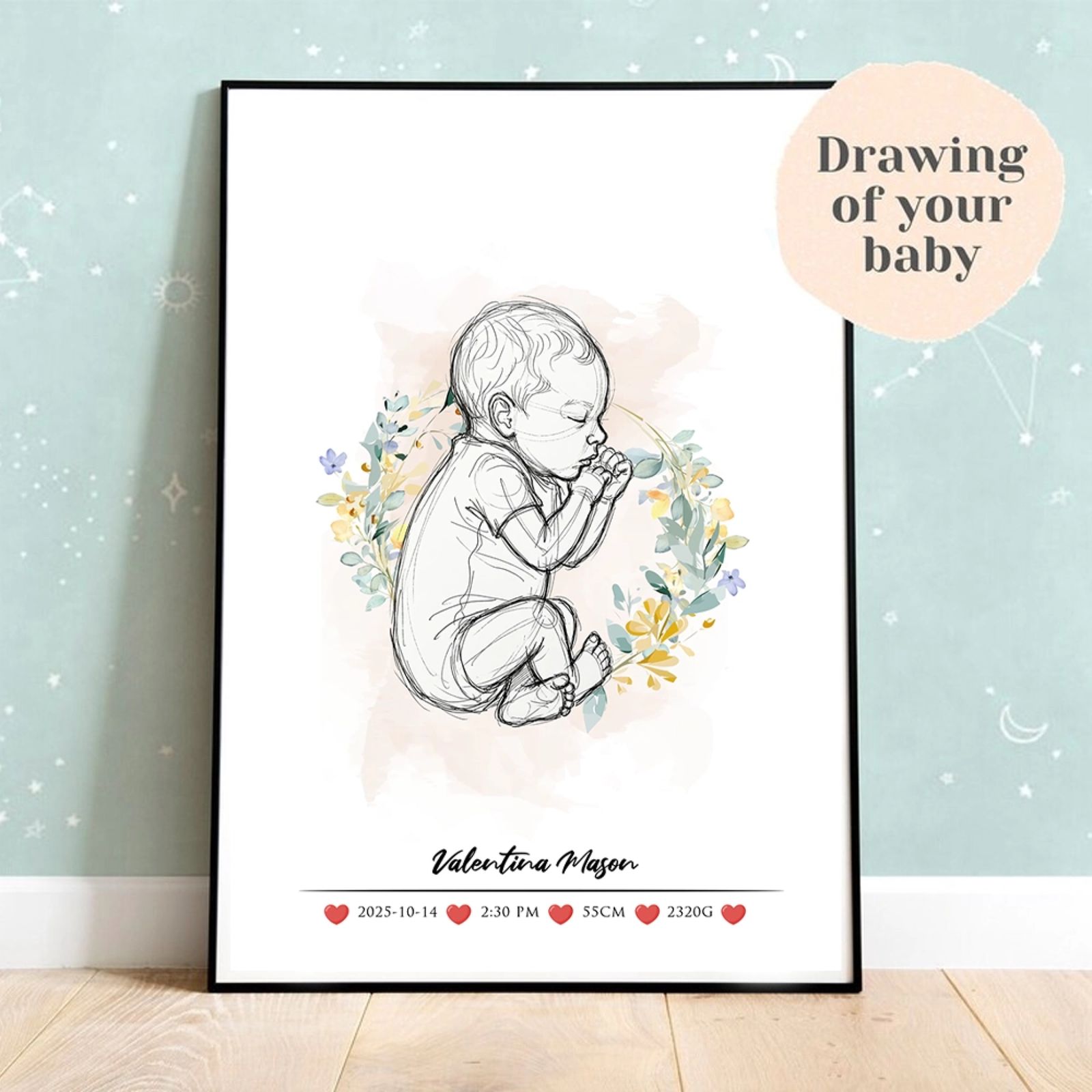 Each poster is made to order and printed with care to ensure a high-quality finish that looks beautiful in any home. A personalised birth poster is more than décor — it’s a keepsake that preserves the day your story began.