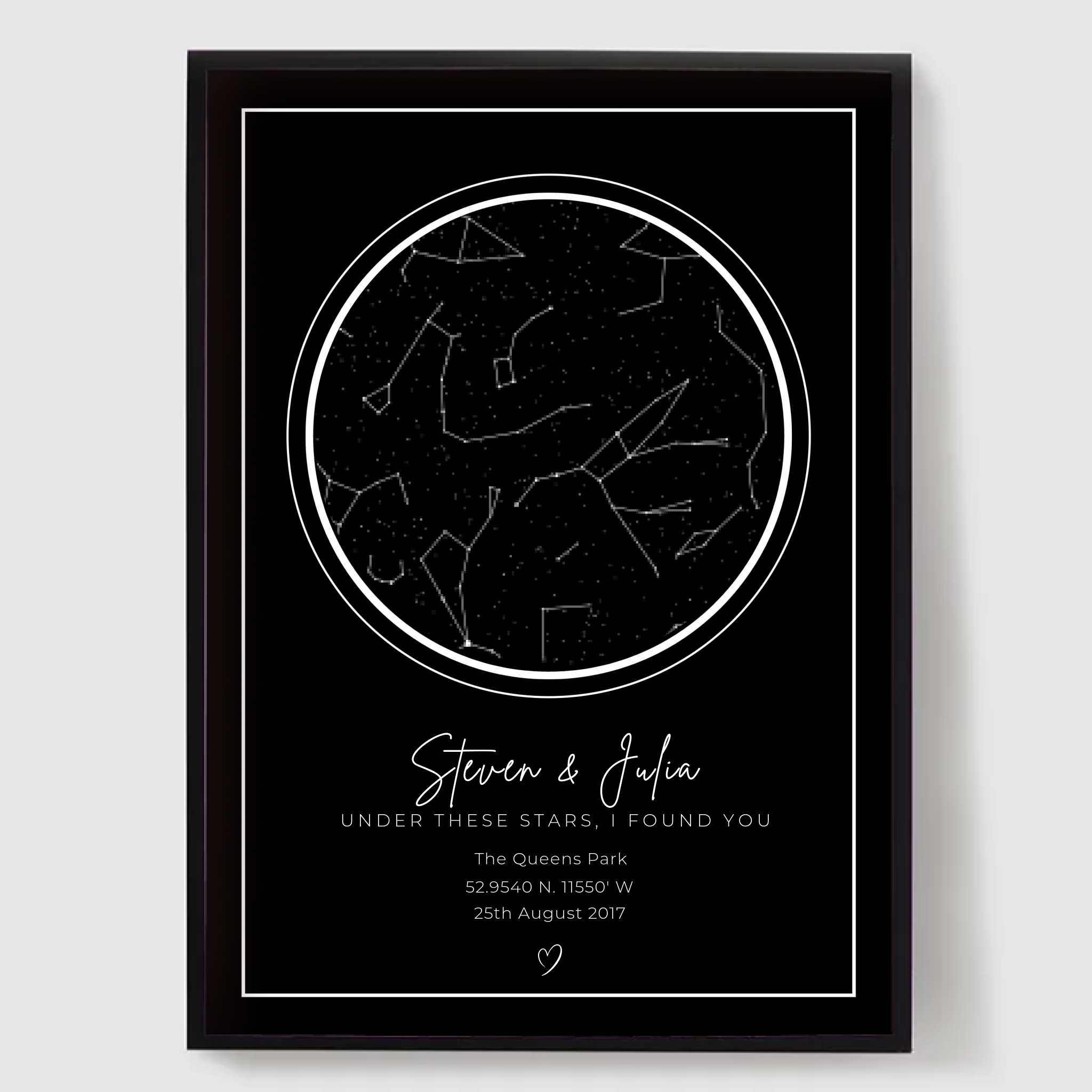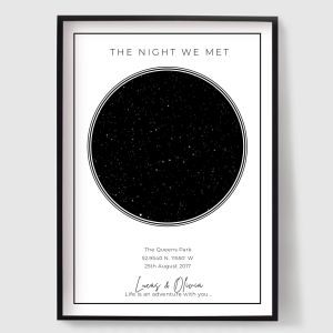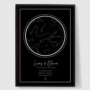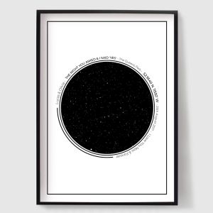 Explore our unique collection of personalised starmaps posters designed to capture a moment in time. Each poster is custom-made, featuring a specific date and location's night sky. Whether you're commemorating a birthday, anniversary, or a special event, our starmaps posters offer a unique and thoughtful gift. They also make a meaningful addition to your own home, immersing you in the celestial beauty of the stars.